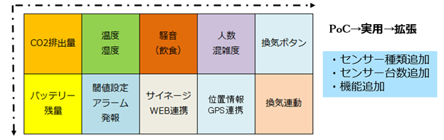 CO2 センサーの更なる普及に伴い感染症対策をより効果的にするためには温度、湿度、騒音など CO2 以外のセンサーデータの収集、データの見え方の工夫、データの多元的な分析による適切な対 策支援が望まれます。