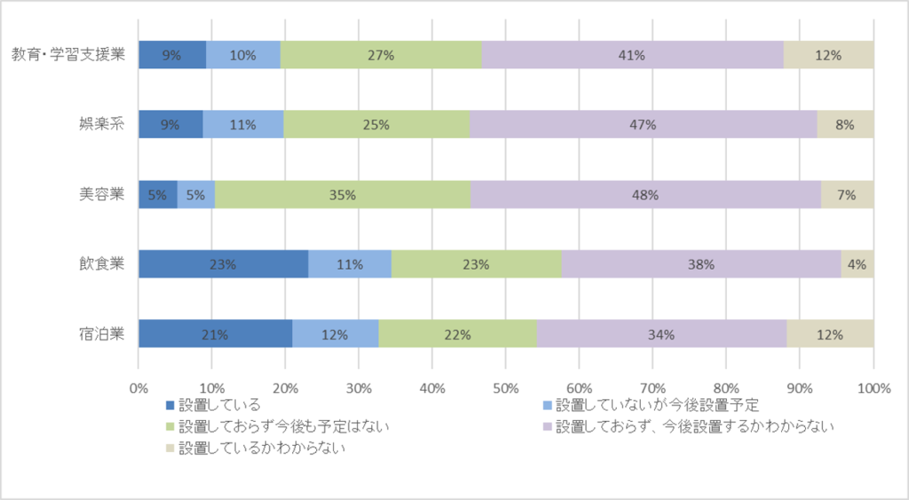飲食業では設置率が 23%と他業種より高い結果が出ておりそれを裏付ける結果になっています。